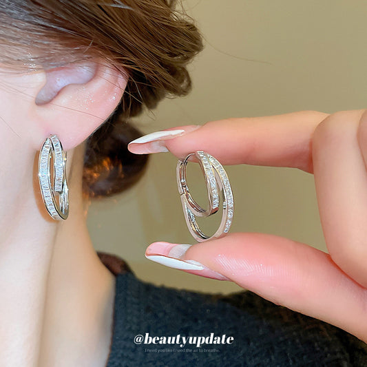 A廠【HE22813】925銀針冷淡風三層C型鏤空耳扣歐美設計耳環輕奢氣質耳環小眾高級感 24.10-2
