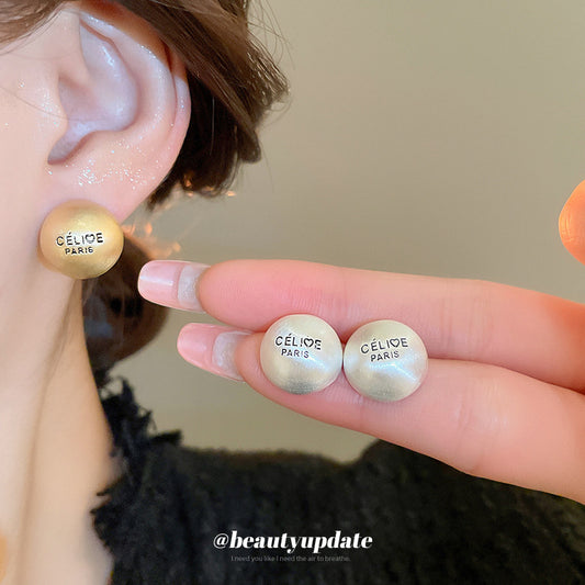 A廠【HE22820】真金電鍍925銀針金屬風拉絲字母圓球耳環時尚設計感耳環輕奢潮流耳飾 24.10-2