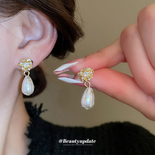A廠【HE22815】真金電鍍925銀針水滴珍珠款耳環小眾時尚簡約耳環輕奢高級感新款耳環 24.10-2