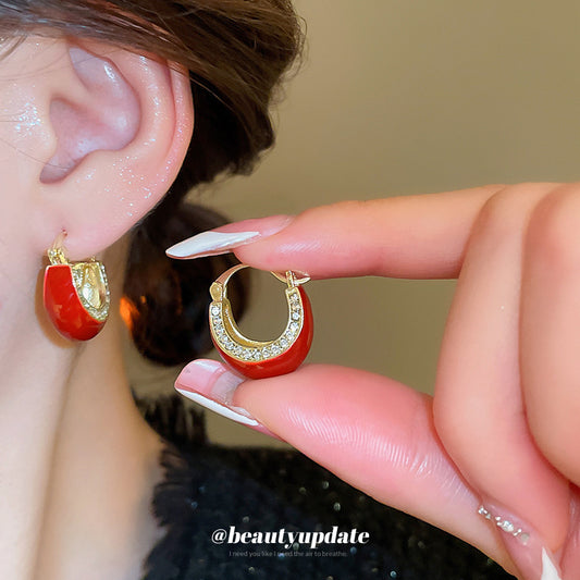 A廠【HE22780】全新品滴油鑲鑽U型籃子耳環復古精緻設計耳環高級感優雅氣質耳環女 24.10-2
