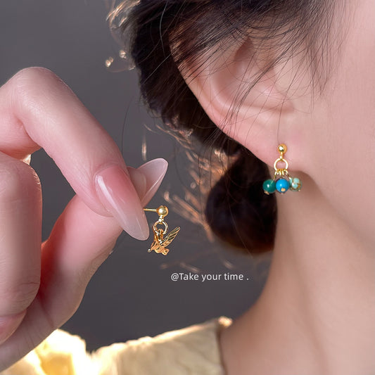 C廠【5812】個性小眾設計師ins不對稱天然石AB款飛鳥手工耳環2025耳環女 25.04-1