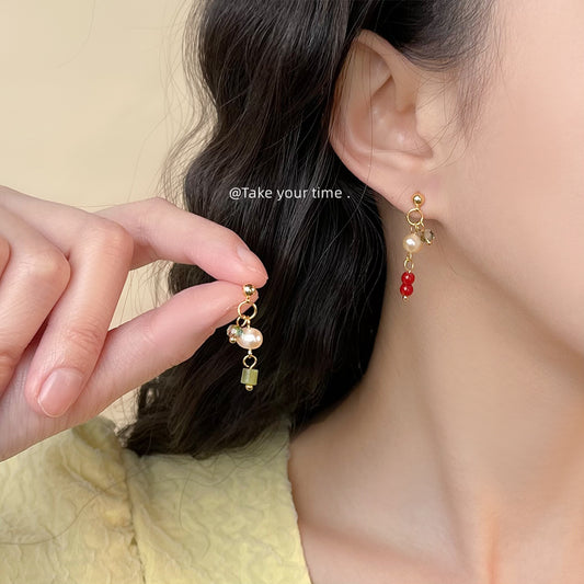 C廠【5834】全新中式天然石長款流蘇復古宮廷手工耳環女氣質優雅夏日新款耳環女 25.04-2