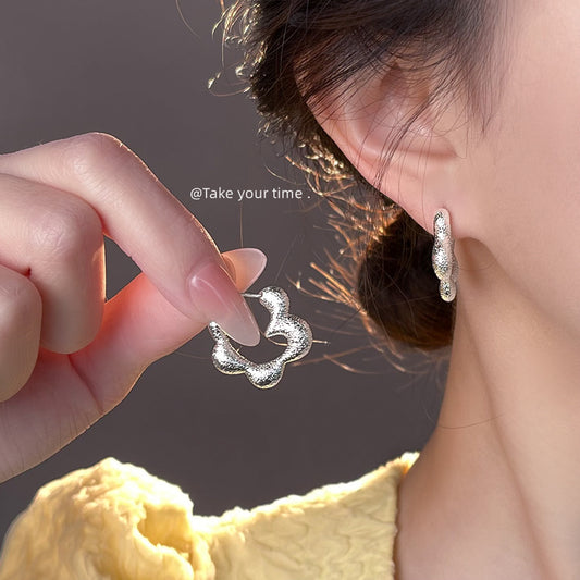 C廠【5828】噴砂質感 清新甜美花朵925銀針耳環氣質優雅日韓2025新款耳飾 25.04-2