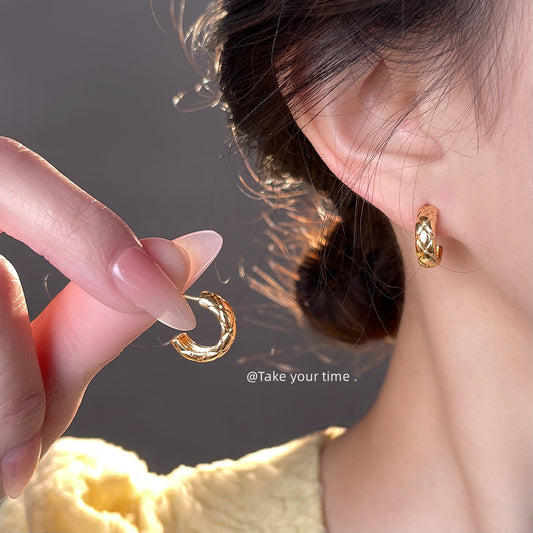 C廠【5824】高級感925銀針鍍14K簡約通勤時尚輕奢金屬感耳環飾品 25.09-3