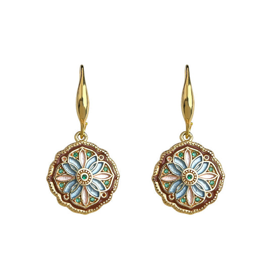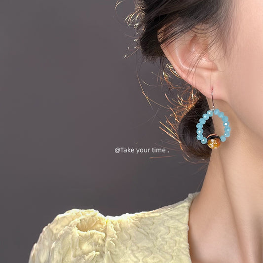 C廠【5818】海藍寶色~玻璃琉璃國潮新中式古風手工耳飾 氣質優雅復古耳環 25.04-1