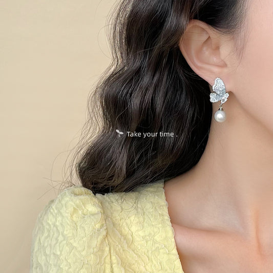 C廠【5817】一款兩戴~微鑲鋯石925銀針蝴蝶珍珠耳環女高級感甜美氣質耳飾 25.04-2