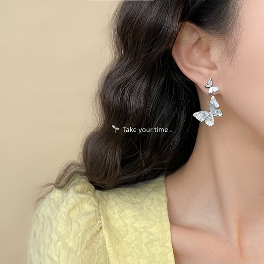 C廠【5832】冰河藍~微鑲鋯石925銀針夏日新款漸變藍玻璃水晶蝴蝶耳飾耳環 25.04-2