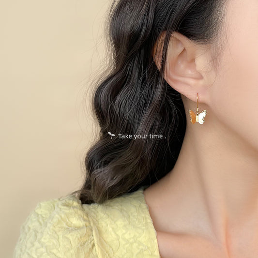 C廠【5815】森系簡約鍍14K立體超仙設計師款蝴蝶耳環女 氣質優雅通勤耳環 25.04-2
