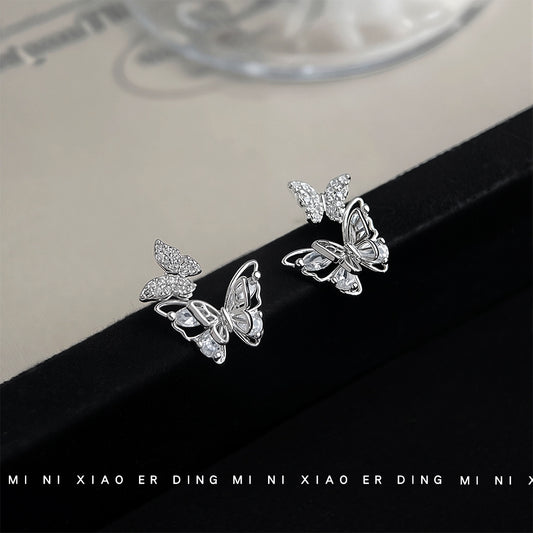 C廠【5821】實物很閃~微鑲鋯石925銀針雙蝴蝶小耳環甜美簡約通勤耳飾 25.04-1