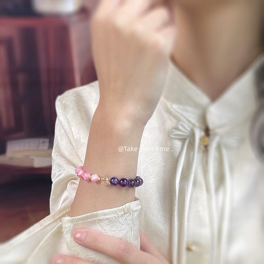 C廠【5849】個性風潮新中式天然石紫水晶薰衣草紫手鍊女原創設計手飾飾品 25.05-1