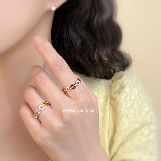 C廠【5845】來錢來錢!微鑲鋯石厚鍍18K真金保色開口可調幾何圓形戒指指環 25.04-2