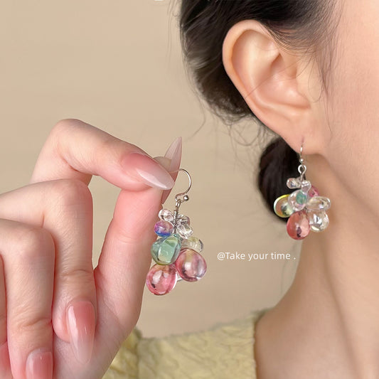 C廠【5862】卟啉卟啉!玻璃琉璃水晶葡萄串水滴手工清新甜美耳飾原創耳環 25.05-1