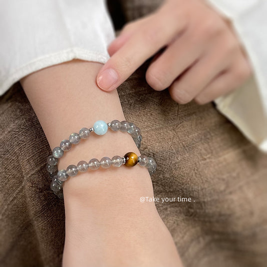 C廠【5852】A++藍月光石透感天然石水晶手鍊虎眼石海藍寶新中式 原創設計手飾 25.04-2