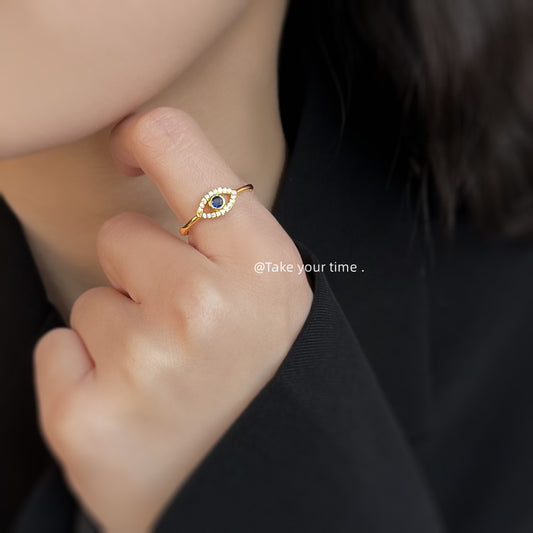 C廠【5844】微鑲鋯石厚鍍18K真金保色開口可調式戒指眼睛指環 文藝復古食指戒 25.04-2