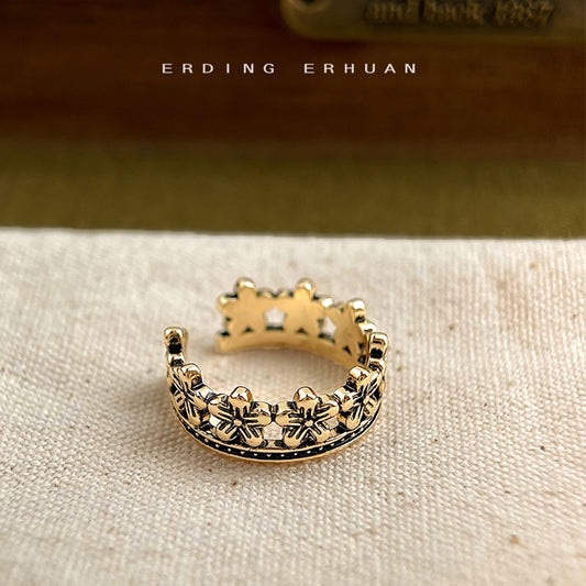 C廠【5881】文藝復古做舊感抹黑鍍真金保色高級感開口可調式戒指新款手飾 25.05-1