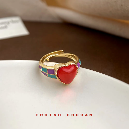 C廠【5879】厚鍍真金保色夏日新款甜美波西米亞度假風開口可調整滴油心型戒指 25.05-1
