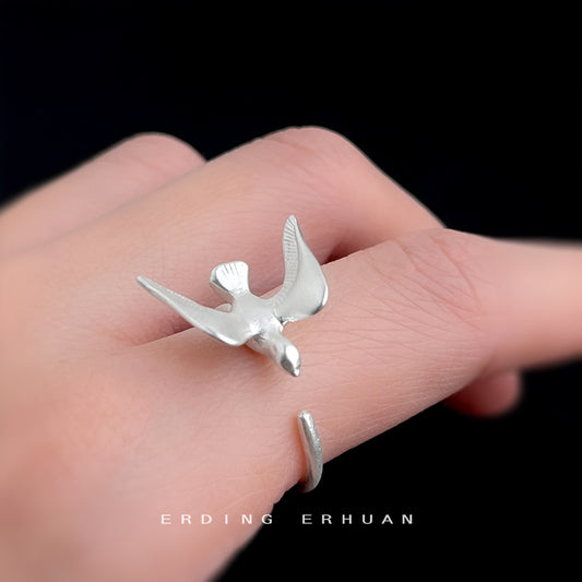 C廠【5877】飛鳥集文藝氣息開口可調式銀色霧面飛鳥戒指個性小眾設計手飾 25.05-1