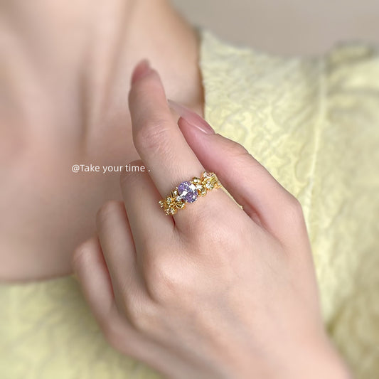 C廠【5925】厚鍍18K真金保色!鑲嵌鋯石實物很閃!開口可調式戒指戒指 食指戒 25.05-1