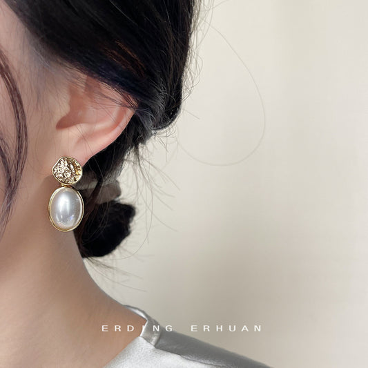 C廠【58】法式復古橢圓珍珠優雅氣質耳環大氣高級感錘紋金屬感輕奢小眾耳飾 24.05-2