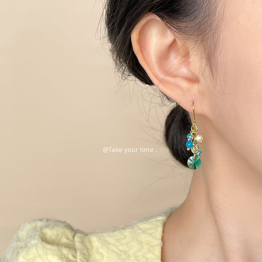 C廠【5905】天然石碎石水晶溫柔海水藍度假風甜美清新手工耳環飾品女 25.05-1
