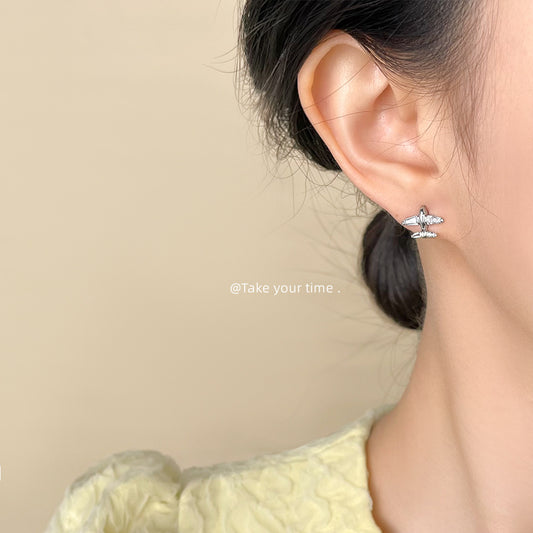 C廠【5930】微鑲鋯石個性小眾ins趣味設計師款小飛機耳環 2025年新款耳飾 25.05-1