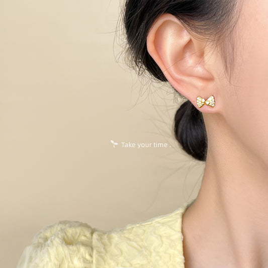 C廠【5936】實物很小!微鑲鋯石925銀針鍍14K簡約通勤蝴蝶結耳環百搭耳飾 25.05-1