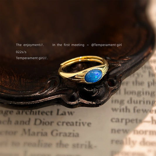 C廠【5928】實物很美 厚鍍18K真金保色開口可調合成歐泊戒指復古高級感手飾 25.05-1