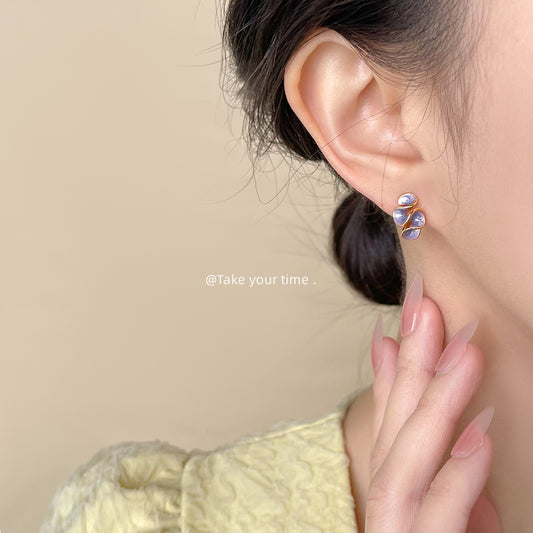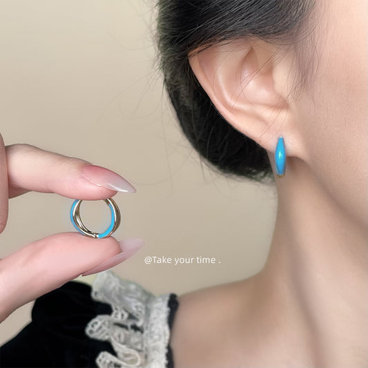 C廠【5940】氣質奶油優雅甜美藍色簡約通勤耳環新款時尚百搭耳環耳環飾品 25.05-3