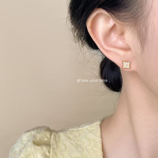 C廠【5932】法式微鑲鋯石老花造型迷你版鍍14K簡約通勤 耳環氣質百搭耳飾 25.05-1