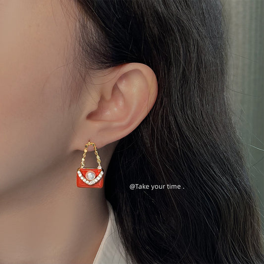 C廠【6082】小眾設計師款小香風橘色包包耳飾琺瑯滴釉個性ins耳環飾品女 25.05-4
