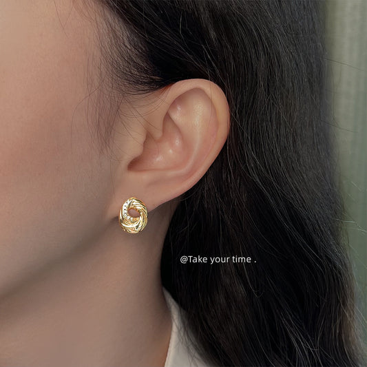 C廠【6103】文藝復古曲奇餅乾925銀針微鑲鋯石時尚高級感鍍14K耳環耳飾女 25.05-4