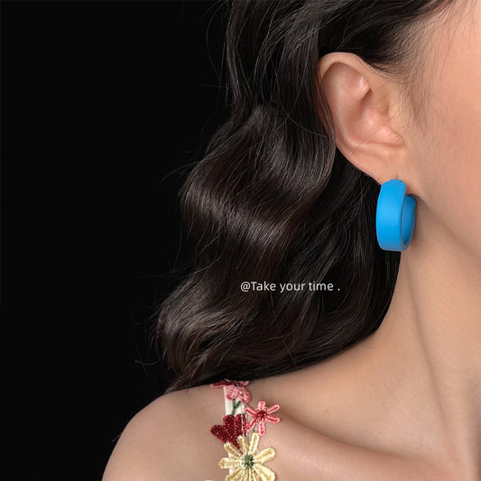 C廠【6141】辣妹款糖果多巴胺藍色調圓形耳環烤漆質感甜美個性度假風新款耳飾 25.05-5
