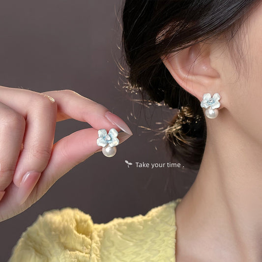 C廠【6146】清新甜美琺瑯滴釉立體花朵銀針微鑲鋯石耳環氣質優雅通勤耳飾 25.06-1