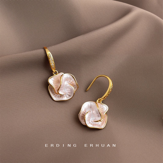 C廠【6145】時尚高級感茶花優雅手工薄塗工藝通勤甜美夏日新款耳環女花朵耳環 25.05-5