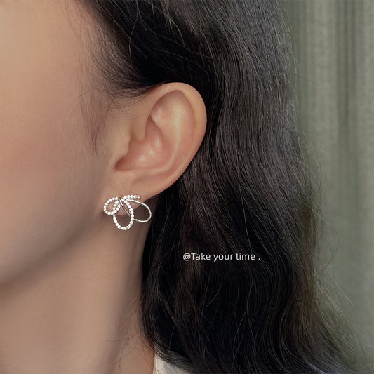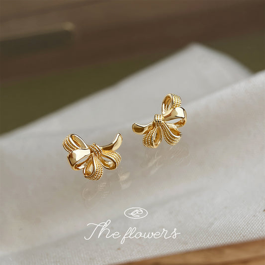 C廠【6087】在逃公主~原創設計師款微鑲鋯石925銀針甜美蝴蝶結鏤空耳飾女耳環 25.05-4