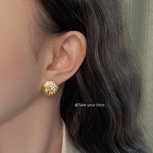 C廠【6089】海洋繁星~925銀針鍍14K微鑲鋯石貝殼耳環時尚高級感耳飾飾品 25.05-4