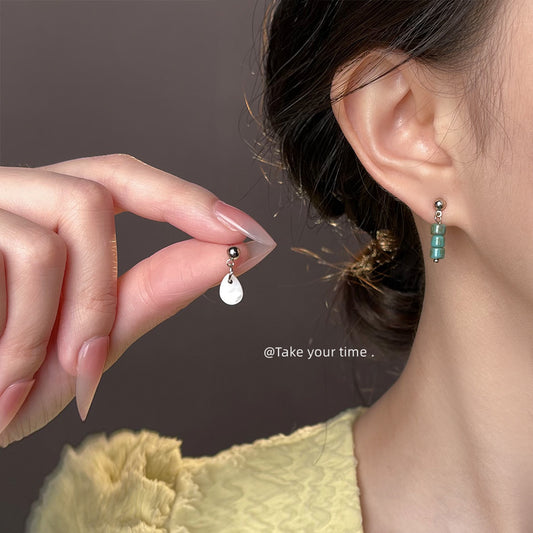 C廠【6171】原創diy新中式小巧簡約設計師款手工耳飾 不對稱水滴貝殼琉璃耳環 25.06-1