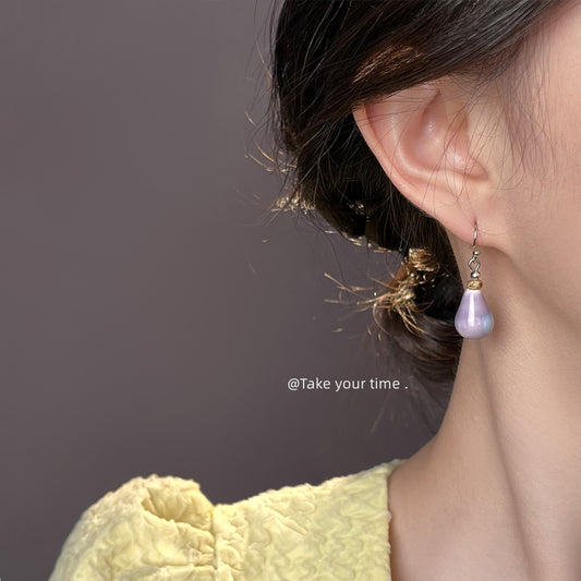 C廠【6180】彩霞~陶瓷水滴耳環 文藝氣質新中式國潮漸層紫色新款原創耳飾 25.06-1