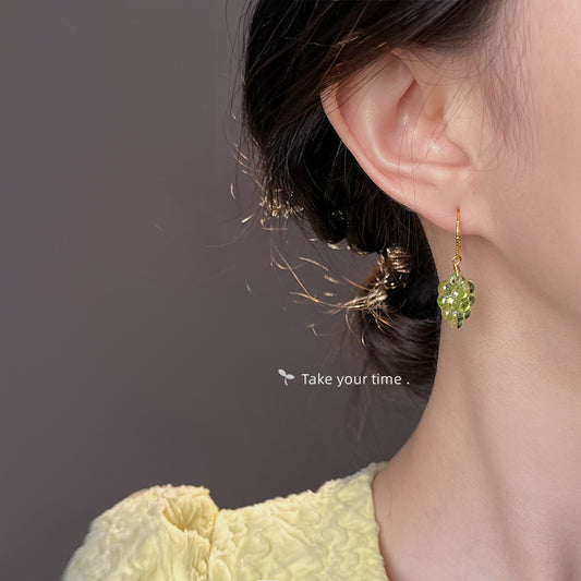 C廠【6183】正品捷克琉璃透感葡萄耳環夏日新款爆款綠色清新甜美森系水果耳飾 25.09-2