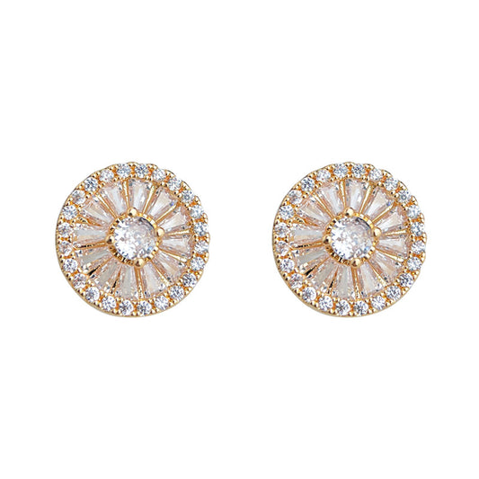 C廠【6322】高級感輕奢風微鑲鋯石圓形幾何銀針鍍14K立體耳環簡約 高品質耳環 25.07-2