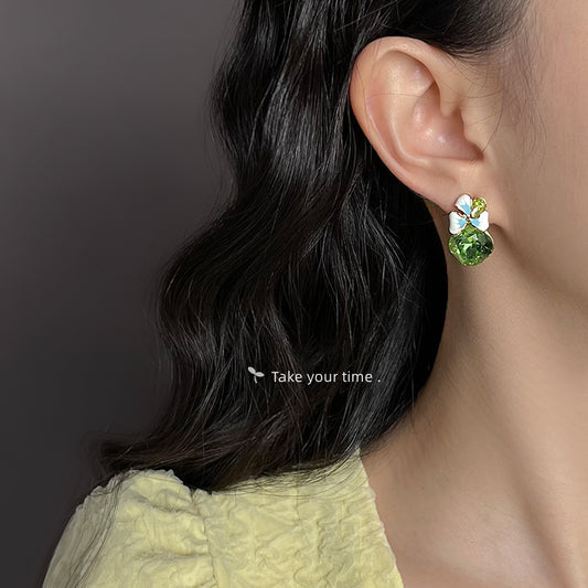 C廠【6312】清新甜美夏日爆款果綠玻璃水晶琺瑯滴釉花朵925銀針耳飾耳環 25.07-1