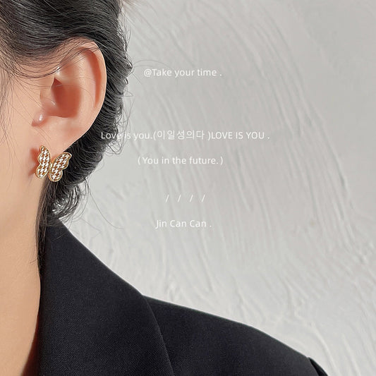 C廠【629】小香風千鳥格蝴蝶布藝氣質耳環高級感通勤百搭設計感優雅小眾耳飾 24.03-2