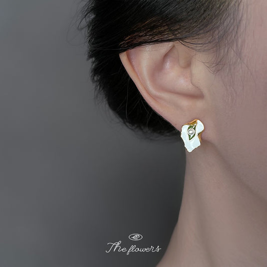 C廠【6795】秋色設計師款微鑲鋯石琺瑯滴釉925銀針鍍14K高級感不對稱耳環耳飾 25.09-3