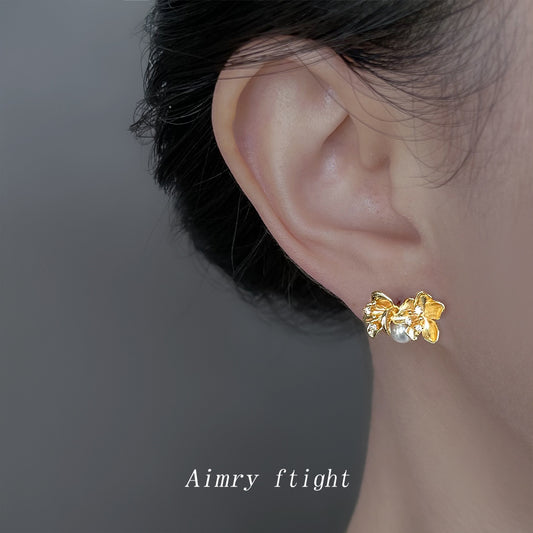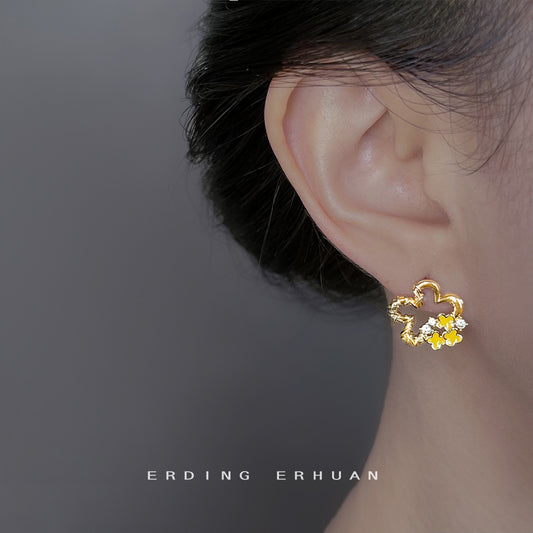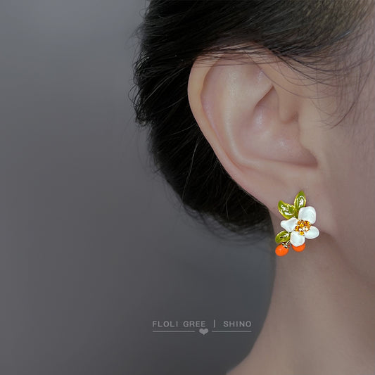 C廠【6798】原創琺瑯柿子田園風925銀針新款設計師花朵立體耳飾耳釘 25.09-3
