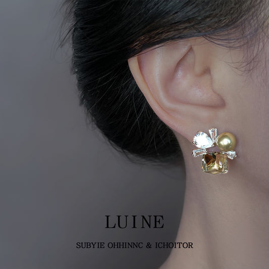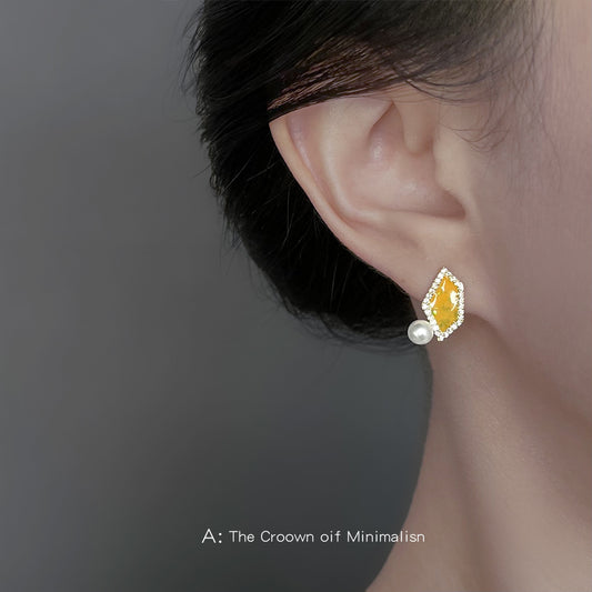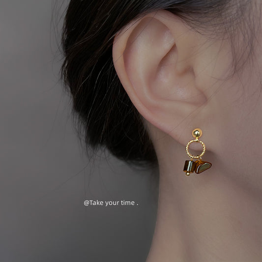 C廠【6788】高級感氣質優雅中古風微鑲鋯石925銀針玻璃水晶咖色秋款耳環 耳環 25.09-3