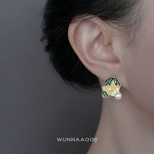 C廠【6787】泡泡女孩原創設計925銀針琺瑯滴釉鍍14K個性創意新款趣味耳飾耳環 25.09-3