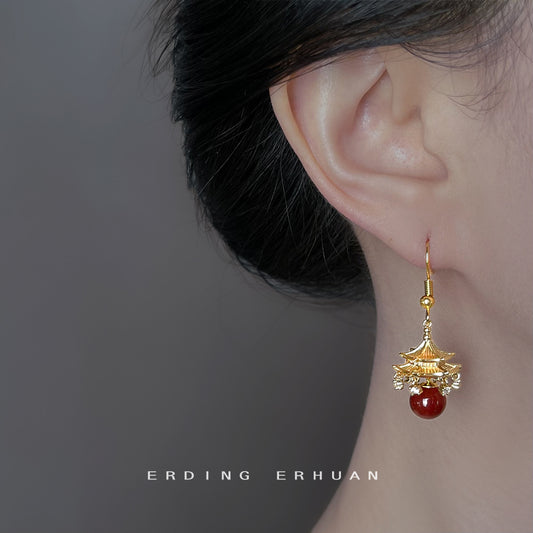 C廠【6786】國潮原創~塔頂閣樓設計師款微鑲鋯石個性新中式新款耳環 25.09-3