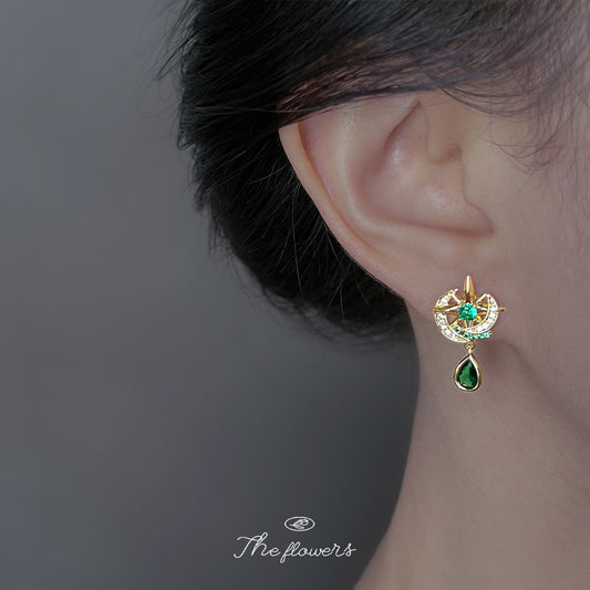 C廠【6792】芒星原創設計微鑲鋯石925銀針鍍14K月亮八芒星時尚高級感耳飾耳環 25.09-3