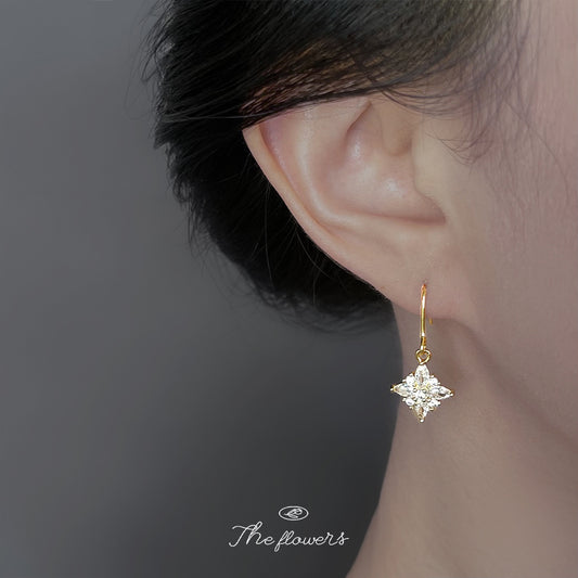 C廠【6800】原創桂花~微鑲鋯石925銀針電鍍14K簡約甜美花朵耳飾耳環 飾品 25.09-3