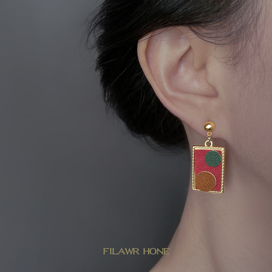 C廠【6783】文藝範復古布藝皮革長方霧面電鍍新款耳環氣質中古風耳飾 25.09-3